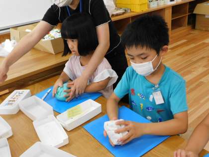 27日(火)、矢車学級では図工室で粘土を使った学習をしていました。