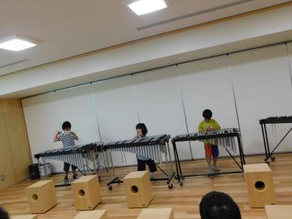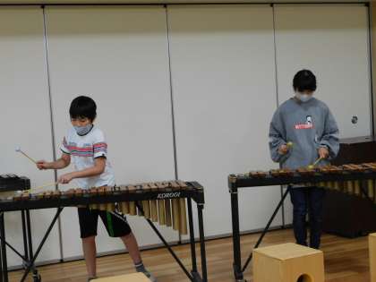 今回体験した楽器は、木琴、鉄琴、小太鼓、大太鼓です。鉄琴については、「ペダルを踏まないと伸びないが、踏むと音が響く。」と音の違いにも気付くことができました。