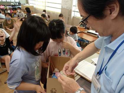 3年理科「ゴムや風の力」では、水を入れた風船に輪ゴムを付けてゴムの性質について学びました。子どもたちは、楽しく活動できました。