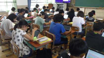 1学期のリスニングチャンツをしました。1学期に学習した表現の音声を聞いてロイロノートで回答しました。