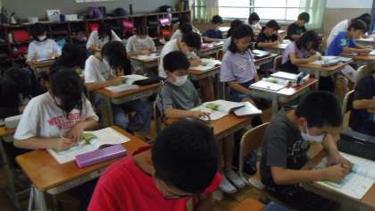アルファベットの大文字と小文字の学習をしました。迷路や線つなぎなどで楽しく学習しました。