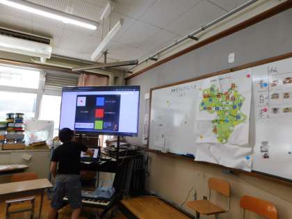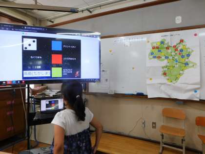 1学期に校舎をすごろくのマップとした「学校探検すごろく」を行っていましたが、都道府県の学習に合わせ、今回は近畿をマップにしたすごろくを行いました。