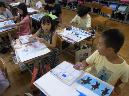 お話を聞いて、想像したことを絵に描いています。いろいろな形や色を想像して、楽しく絵を描いている姿が見られます。