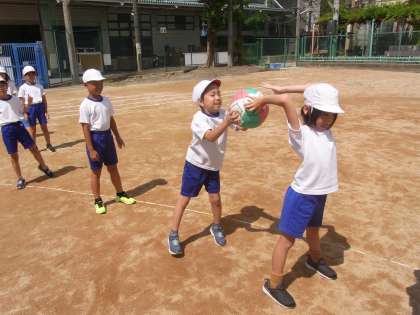 10月のスポーツフェスティバルにむけて、練習が始まりました。ボール送りゲームでは、みんなで協力して「どうすれば早くできるのだろうか。」と考えている様子が見られました。