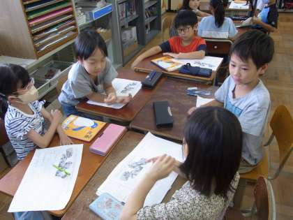 スーパーマーケットの工夫について学習をしています。定員さんが工夫して行っていることや思いについてなどを考え、友だちと話し合っています。