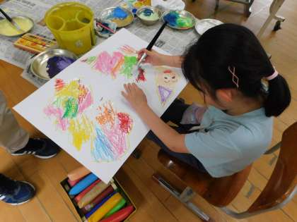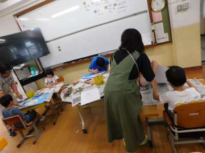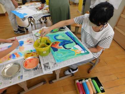 12日(水)、矢車学級では図画工作で「お話の絵」を描いています。