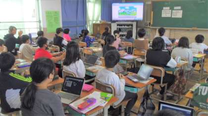 今日は「できることをたずねあおう。」をめあてとして学習しました。はじめにi Love the Moutain.の歌を歌いました