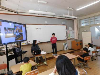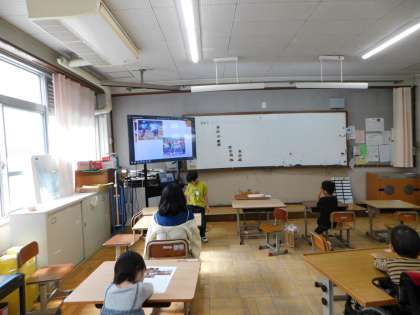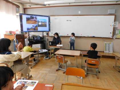 自分たちが走っている写真や演技・競技をしている写真を見せながら、頑張ったことなどをみんなに伝えました。自分たちの思いを自分の言葉で伝えることができました。