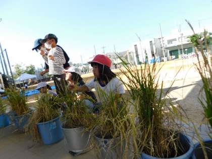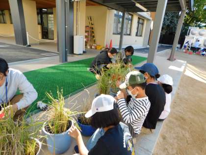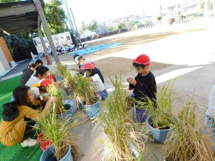 18日(水)、矢車学級では、サツマイモだけでなくお米も収穫しようとしました。