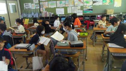 次にペアトークをしました。インタビューした先生のできること,できない事をつたえあいました。
