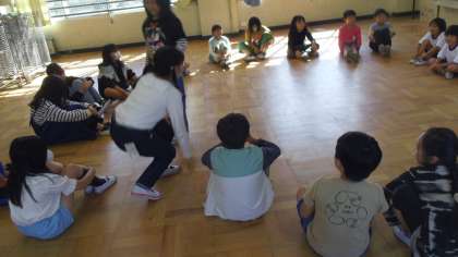 昼休みの時間に,にこにこ遊びをしました。6年生のリーダーたちが中心となってみんなで楽しく遊びました。
