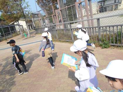 10月27日(金)に校外学習で動物園に行きました。動物については、生活科で学習した「小さな生き物」や国語科で学習した「どうぶつ園のじゅうい」で学んできました。動物園では、教員が準備したクイズラリーを持ち、いろんな動物を観察しました。小学生になって、初めての地下鉄に乗り、遠くまで歩く機会ではありましたが、全員がマナーを守り行動することができました。電車では一般の方に席を譲り、「ありがとう。」と言ってもらえる機会もありました。動物園の中では、グループ行動で友達と折り合いをつけながら行動することができました。自分のわがままだけを通してはグループ行動ができないこと、相手の気持ちを考えることなどたくさんのことを学んでくれたことと思います。ご家庭でも、どんな様子だったのかお話を聞いてみてください。