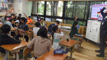 今日は特別にハロウィンクイズを行いました。子どもたちはクイズを通してハロウィンの歴史を知ったり、ハロウィンで使う表現に慣れ親しんだりしました。
