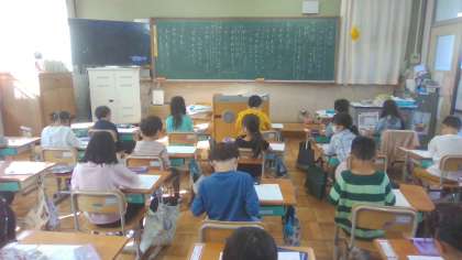 本日、古典の日のため、国語科の学習で「竹取物語」を学習しました。子どもたちは、千年以上の前の言葉に最初は難しいと戸惑っていましたが、学習が進むにつれ、言葉の意味が分かるようになってくると、普段の言葉との違いを楽しむようになってきました。