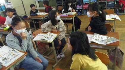 後半はペアトークで自分が行きたい国でできることを伝え合いました。