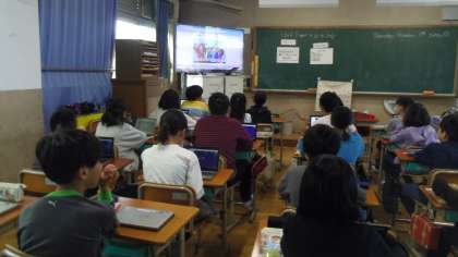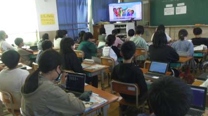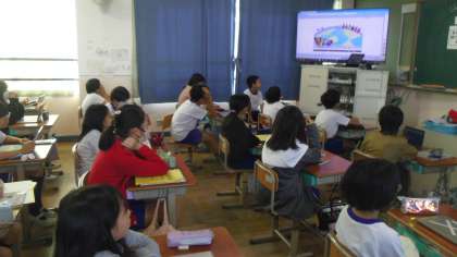 5年外国語科Unit6の3回目の学習をしました。はじめにIt's a Small Worldの歌を歌いました。少しづつ歌えるようになってきています。