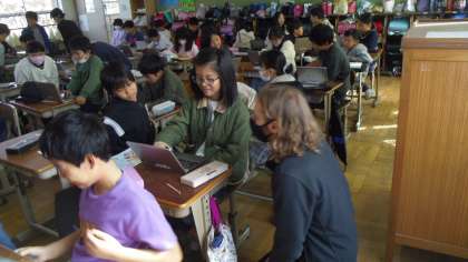 今日はALTの先生が一緒でしたのでALTの先生とペアを作って伝え合っている人もいました。