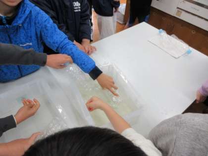 4年生は今週から、理科室でものの温度と体積の学習をしています。ペットボトルの中の空気を温めたり、冷やしたりしてそれぞれの場合での違いを感じました。