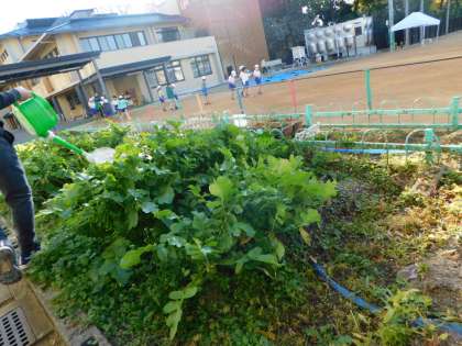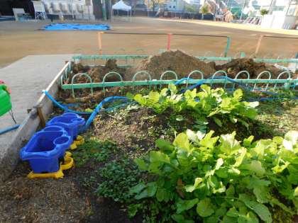 4日(月)の学校園の様子です。ダイコンがかなり大きくなってきました。