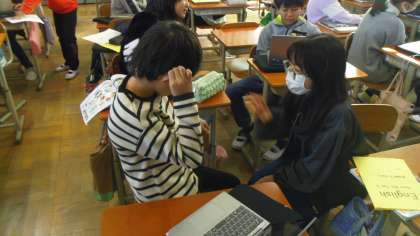 後半にはペアトークであこがれの人の名前紹介をしました。アニメーションの視聴で知った表現を使ってあこがれの人の名前を伝え合いました。