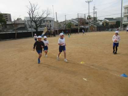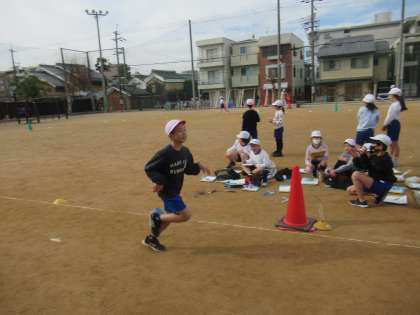 先週から、「ゆっくりペース走」が始まり、5分間走っています。歩いたり止まったりせず、自分のペースで走り切ることをゴールに、子どもたちは一生懸命走っています。また、走っている友達に「がんばれ!」「今5周だよ。」と温かい声掛けをしている姿が見られます。これから、自分の記録をどんどん塗り替えていってほしいです。