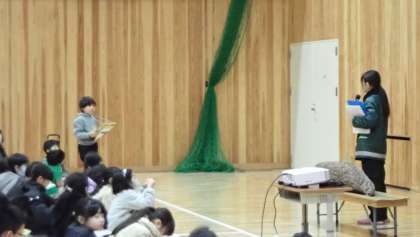 学習の最後には、京都水族館と中継をつないで、本物のオオサンショウウオの息継ぎの様子や折り重なって過ごしている様子を観察しました。また、子どもたちのさまざまな質問にも答えていただくことができました。