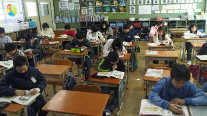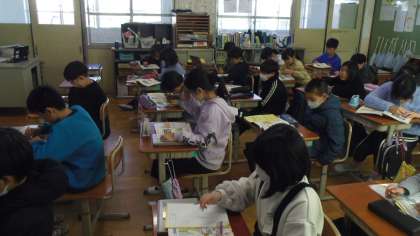 歌の次に物がどこにあるかたずねたり答えたりする表現に慣れ親しみました。