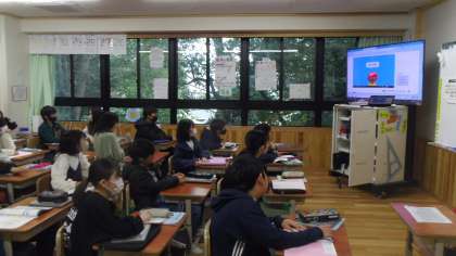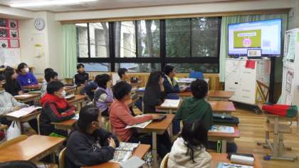 次にチャンツを言いました。このユニットの最後には5年生に発表をするので、5年で学習した表現を復習しました。