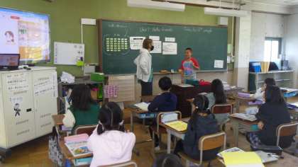 今日はALTの先生と一緒に学習しました。ペアトークの後にチャレンジタイムとしてALTの先生と自己紹介をしあった子どもがいました。とてもがんばっていました。