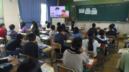 5年生では各自のギガ端末でデジタル教科書を使いますので各自のイヤホンの準備をお願いします。