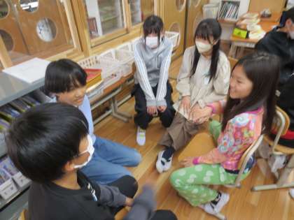 6年生の国語科の初めの授業では、みんなで一文ずつつないで、お話を作っていきました。前の人の言ったことをよく聞き、最後の文につながるように考えを出し合いました。お話がより楽しくなるように、たくさん工夫をする姿が見られました。