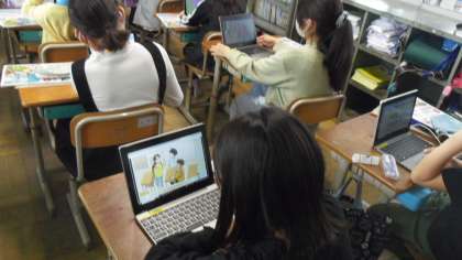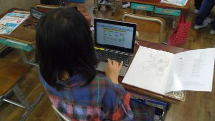 ログイン設定ができた子どもからデジタル教科書の歌やチャンツなどを各自で使いました。
