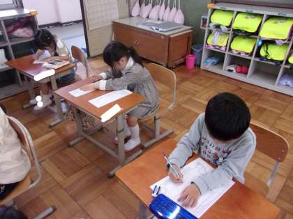 今日は入学して初めて、自分の名前を書いてみました。見本を見ながら、一生懸命書いている姿が素敵でした。2年生になるころにはどんな字になっているかな。