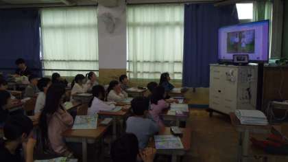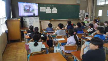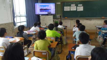 その次はデジタル教科書を使って世界のあいさつの動画を視聴しました。視聴したあとにその国のあいさつを真似してみました。