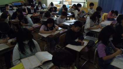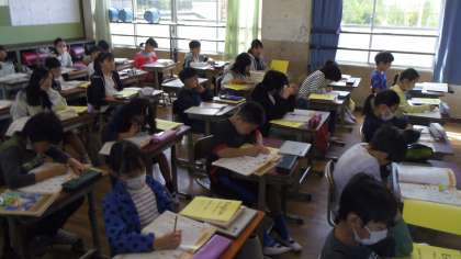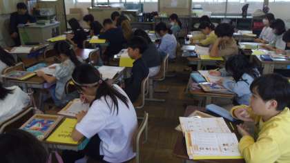 歌の次にLet's Watch Let's とListenをしてつづりをたずねる表現を学習しました。