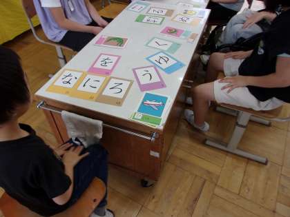 「はひふへほの『は』」や「せんせいの『せ』」などという形で読み上げて、札を取りました。楽しみながらひらがなの学習をすることができました。