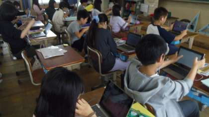 次にLet's Precticeをしました。各自のギガ端末でデジタル教科書を使って表現の練習をしました。