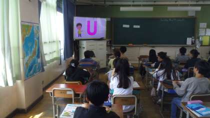 unit1の6回目の授業をしました。はじめにABCソングを歌いました。