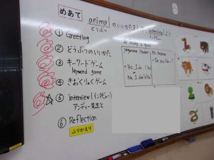 最後にはALTの先生に英語で好きな動物を聞かれて好きかそうではないか答えたり、好きな動物を尋ねたりすることができました。振り返りでは、