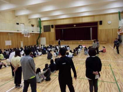13日(月)、中間休みに部活動開講式を行いました。みんなで力を合わせて頑張っていきましょう!