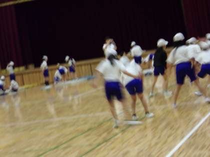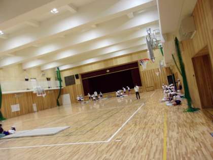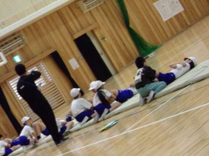 4年生はアリーナで反復横跳び・長座体前屈・上体起こしを行いました。