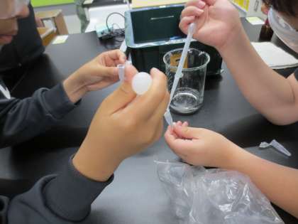 理科の学習で、人間の体の仕組みについて学習しています。ヒトの唾液には、どのような働きがあるのかを、調べる活動をしました。