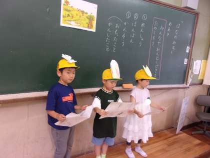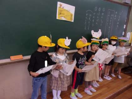 国語科「はなのみち」の学習の締めくくりとして、音読劇をしました。みんなそれぞれの動物になりきって、発表することができました。