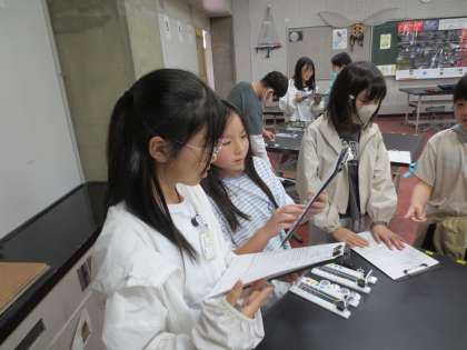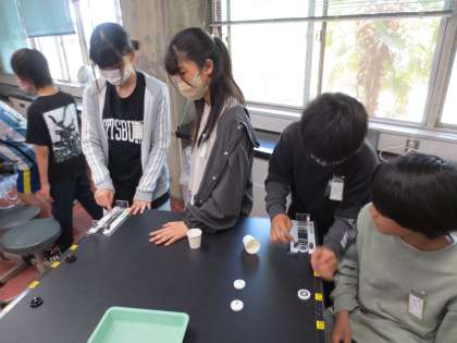 実際に集めたデータをもとに、カーリングに取り組んでいる様子です。話し合いながら、工夫しながら活動しています。