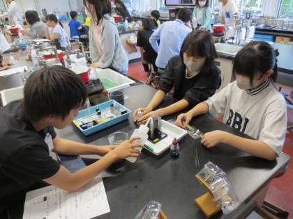 科学センターで「化学」について学習しました。テーマは「泡の力」でした。せっけんを入れた水と入れていない水では、どのように洗浄力が違うのかを実験しました。