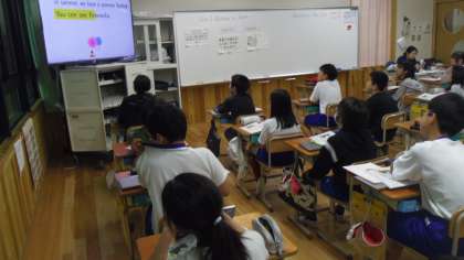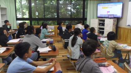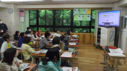 歌の次にデジタル教科書を使って季節や行事を伝える表現に慣れ親しみました。