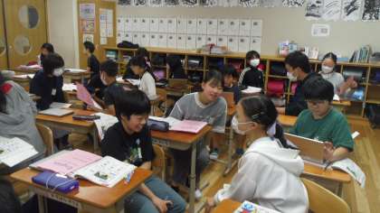 今日は西院中英語科の先生がサポートに入っていただき、中学校の先生とペアトークをした人もいました。