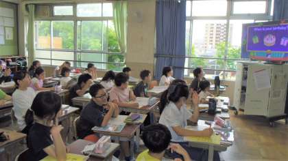 昨日学校行事の関係で外国語科の授業がなかったクラスのUnit2の授業を行いました。