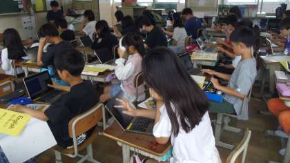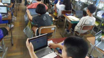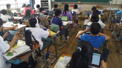 その次にデジタル教科書やロイロノート音声付カードを使って表現の練習をしました。