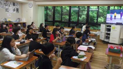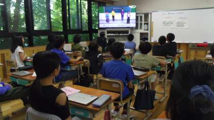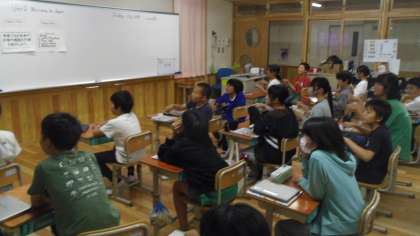 はじめにSwimming,Swimmingの歌を歌いました。歌に合わせて踊っている人もいました。